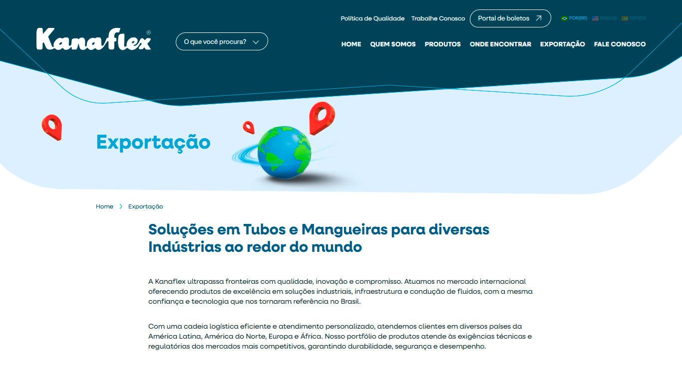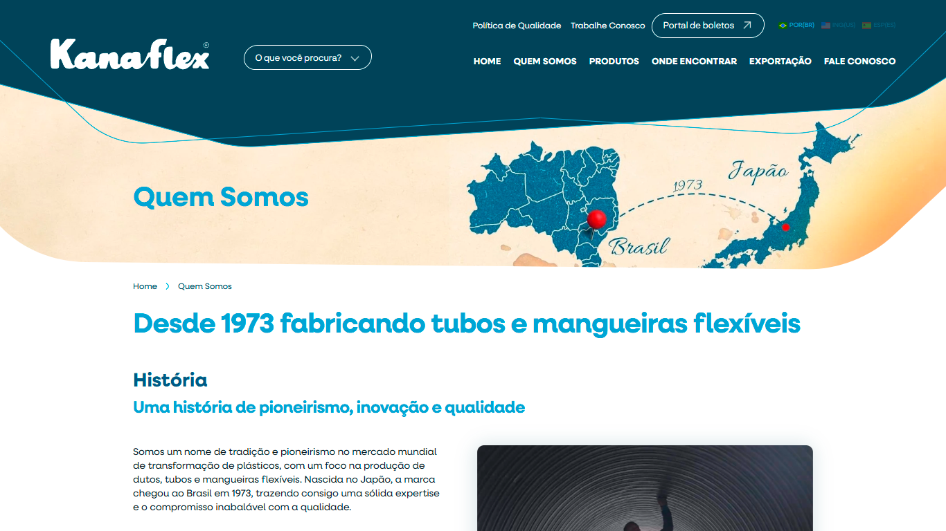 A Kanaflex enfrentava o desafio de atualizar sua presença digital para refletir a robustez de sua trajetória industrial, a amplitude de seu portfólio técnico e o pioneirismo na fabricação de tubos e mangueiras em PEAD no Brasil. Como uma marca consolidada no setor de transformação de plásticos, precisava comunicar sua evolução tecnológica e manter a clareza e confiabilidade de suas informações para um público altamente técnico e diversificado.