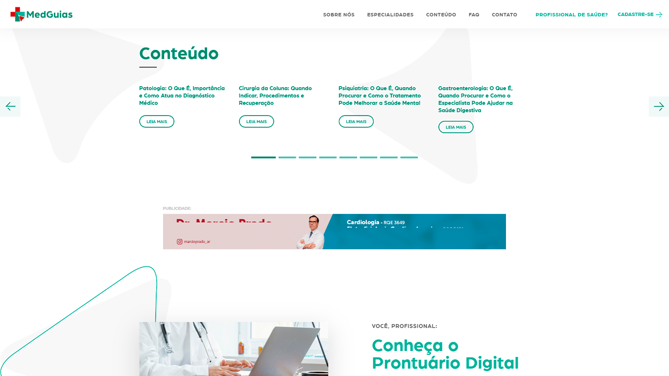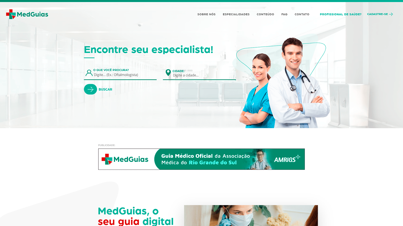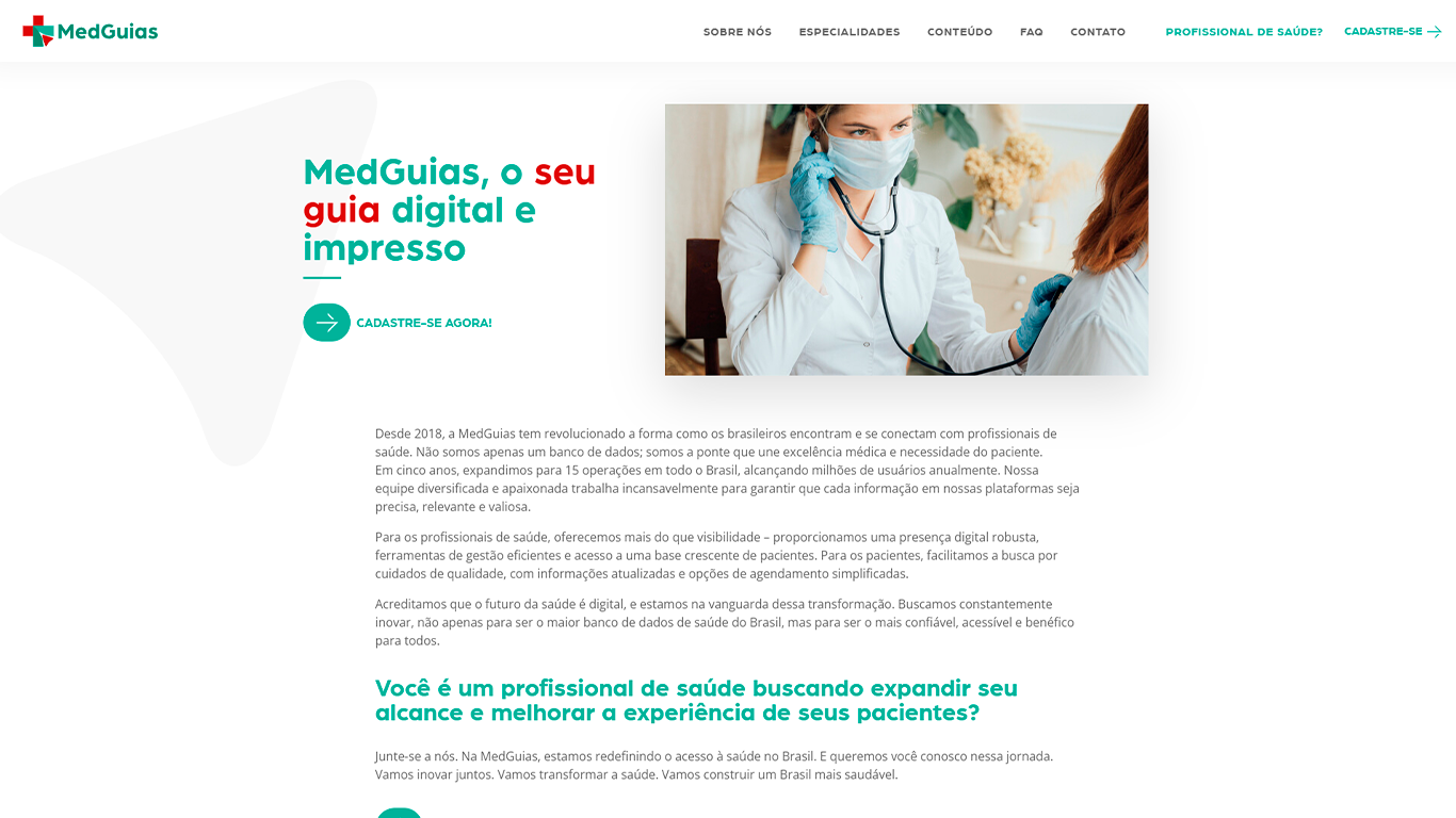 Modernizar o site e os canais digitais com uma comunicação clara, intuitiva e que reforçasse a credibilidade da MedGuias como referência no setor de saúde.