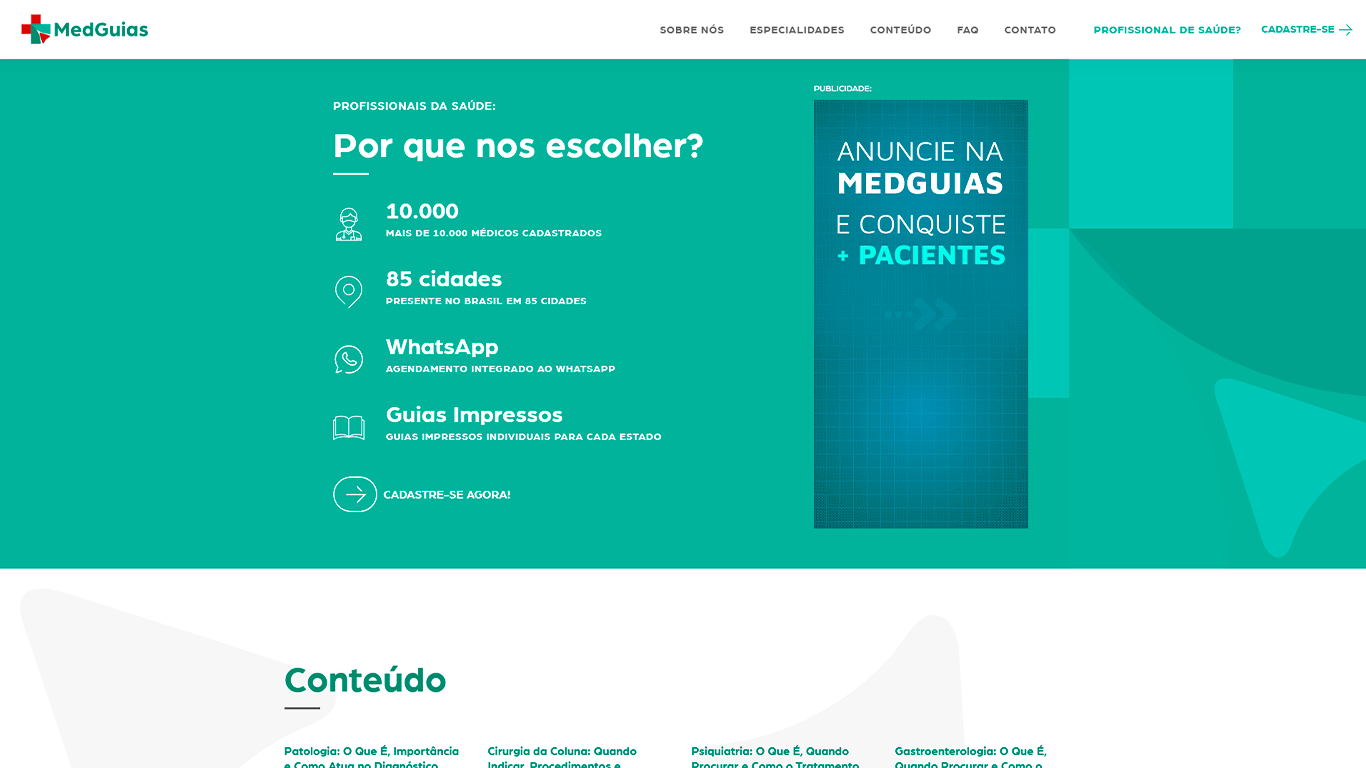 Organizar e apresentar o ecossistema da MedGuias de forma objetiva, atendendo às necessidades de médicos, clínicas e pacientes que buscam informações confiáveis e agendamento simplificado.