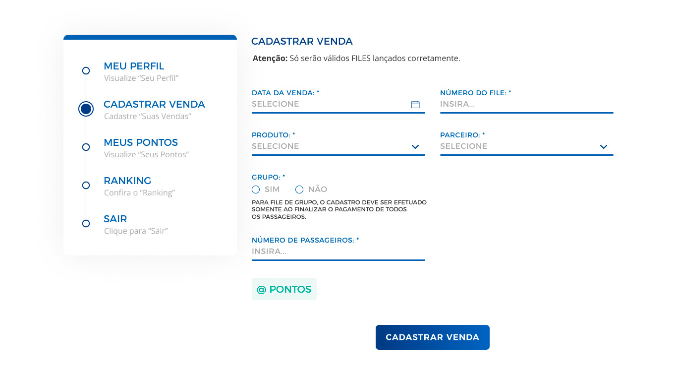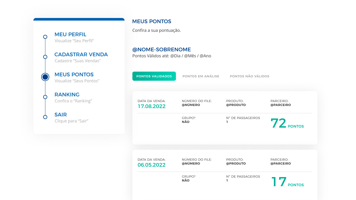 Através da definição das estratégias entre os times (Viagens Preciosas, AFT Digital e VitaminaWeb), foram definidos os fluxos e estruturas necessárias para criação e implementação de um site onde as vendas pudessem ser registradas para acompanhamento e validação da pontuação.