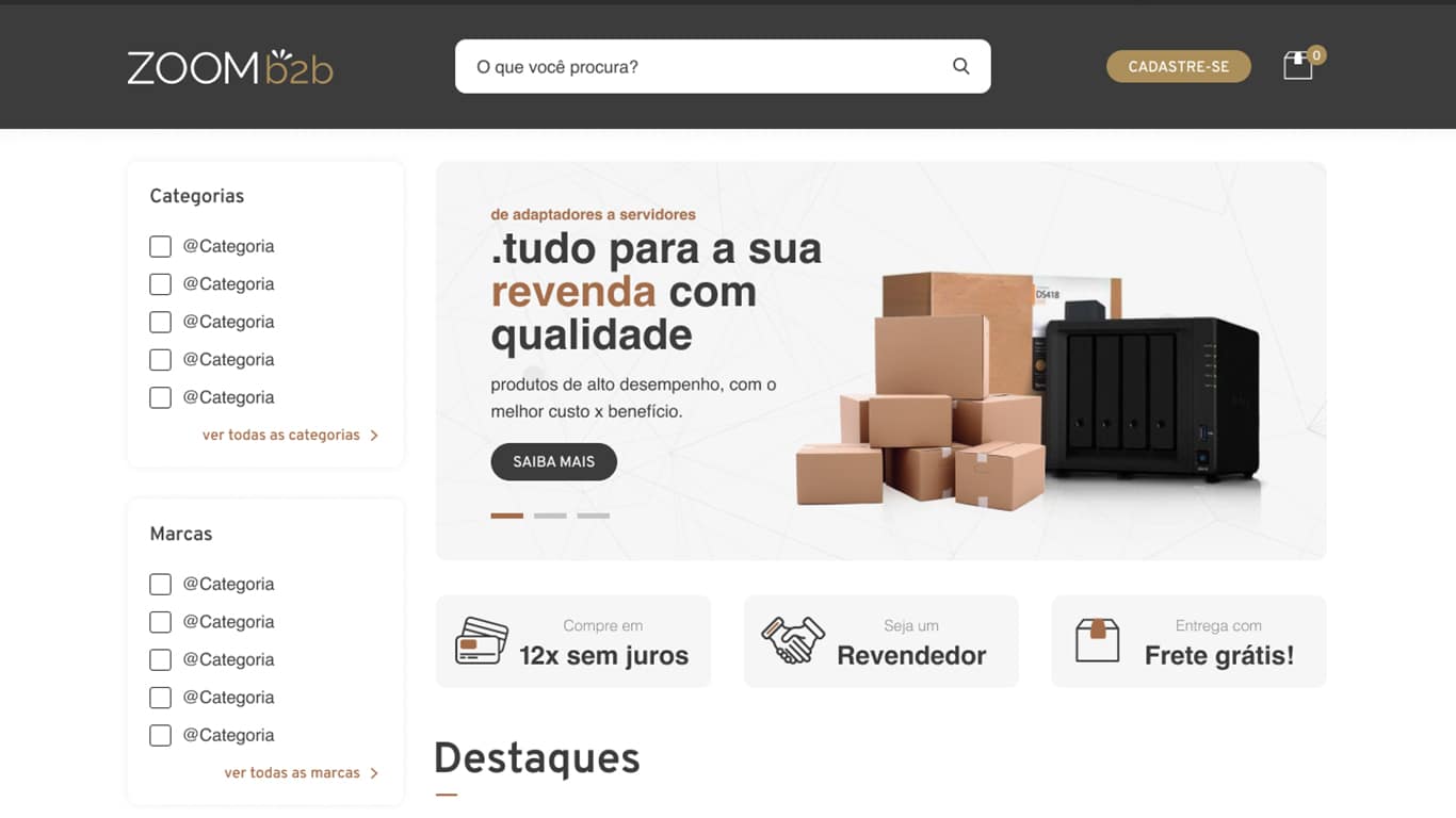 ZOOMb2b é o e-commerce com foco no segmento de pequenas e médias empresas atuando com todo o portfólio da ZOOMindustry, empresa do Grupo ZOOMtecnologia, e demais parceiros como Huawei e Realme.